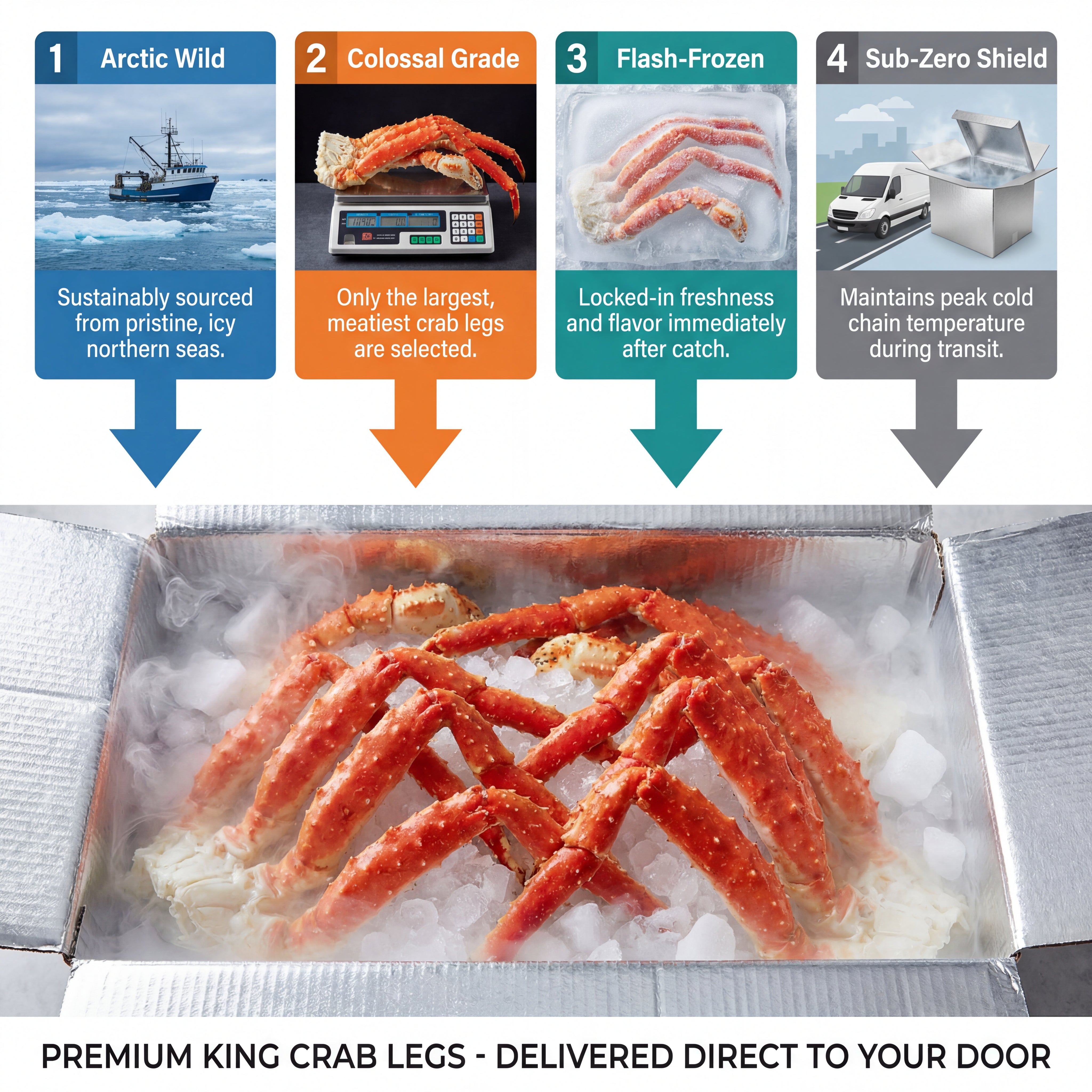 why the low price? We are clearing out our inventorydirectly from the vessel. Skip the $60/lb grocery storemarkups and indulge in succulent, jumbo-grade crab legsfeaturing that legendary buttery sweetness.From the icyAlaskan depths to your table-100% natural, 100% full ofmeat, and 100% risk-free.